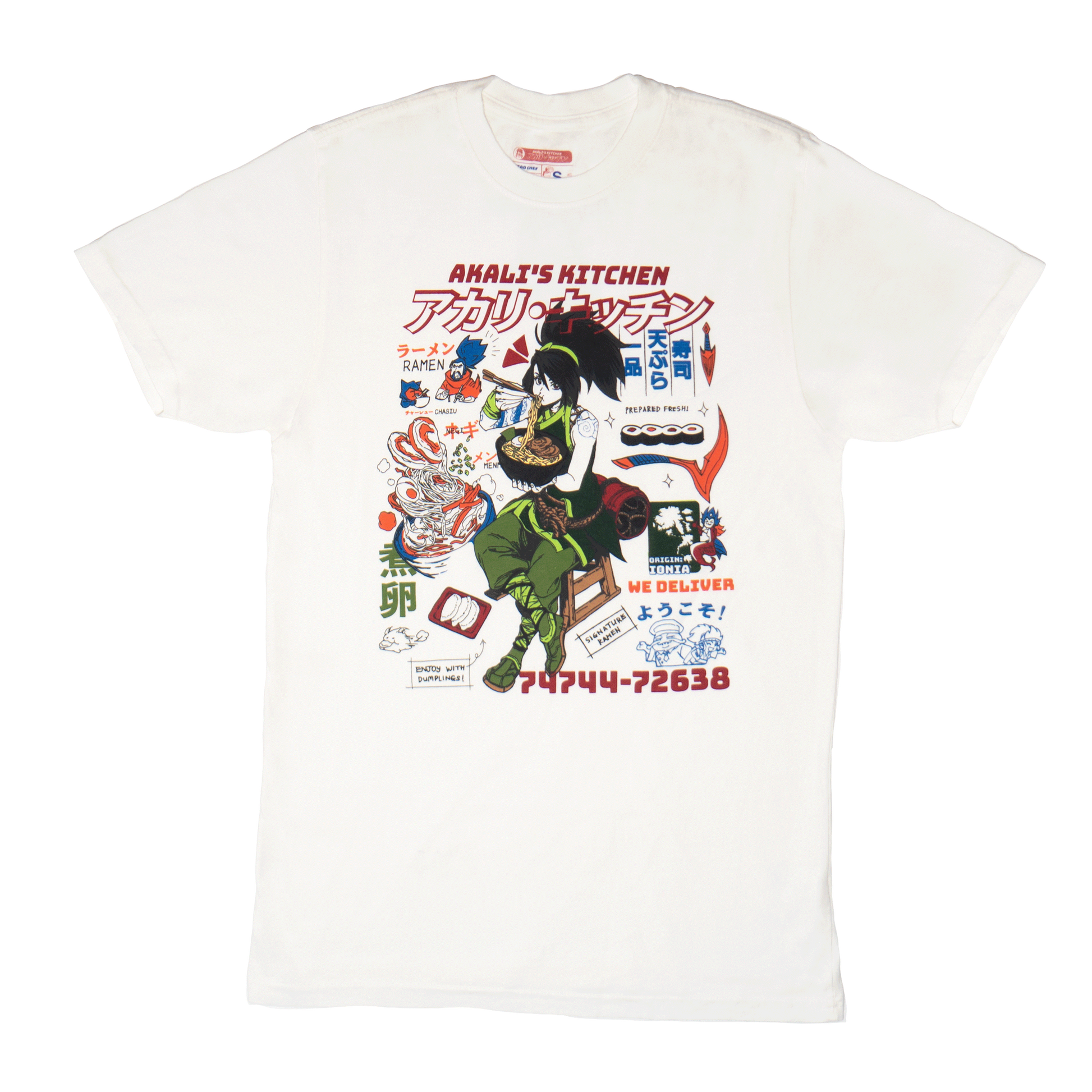 Indulge your taste for both style and strength with our Akali's Kitchen tee! Adorned with a bold graphic of the Shadow Assassin savoring a bowl of delectable ramen on the front, this tee asserts that even in battle, there's always time for a satisfying slurp. Embrace the flavor of victory and let your fashion speak volumes about your passion for gaming and gastronomy!