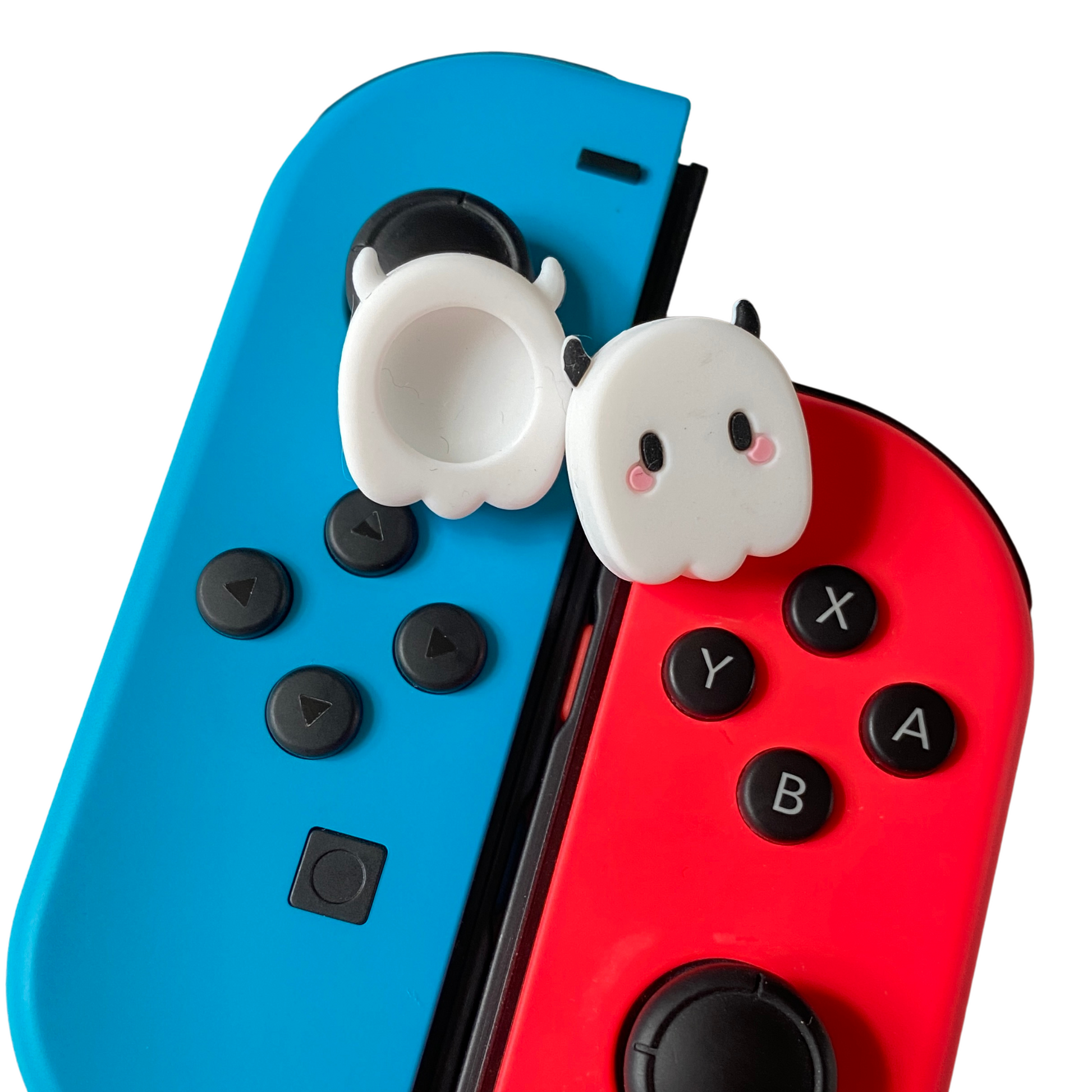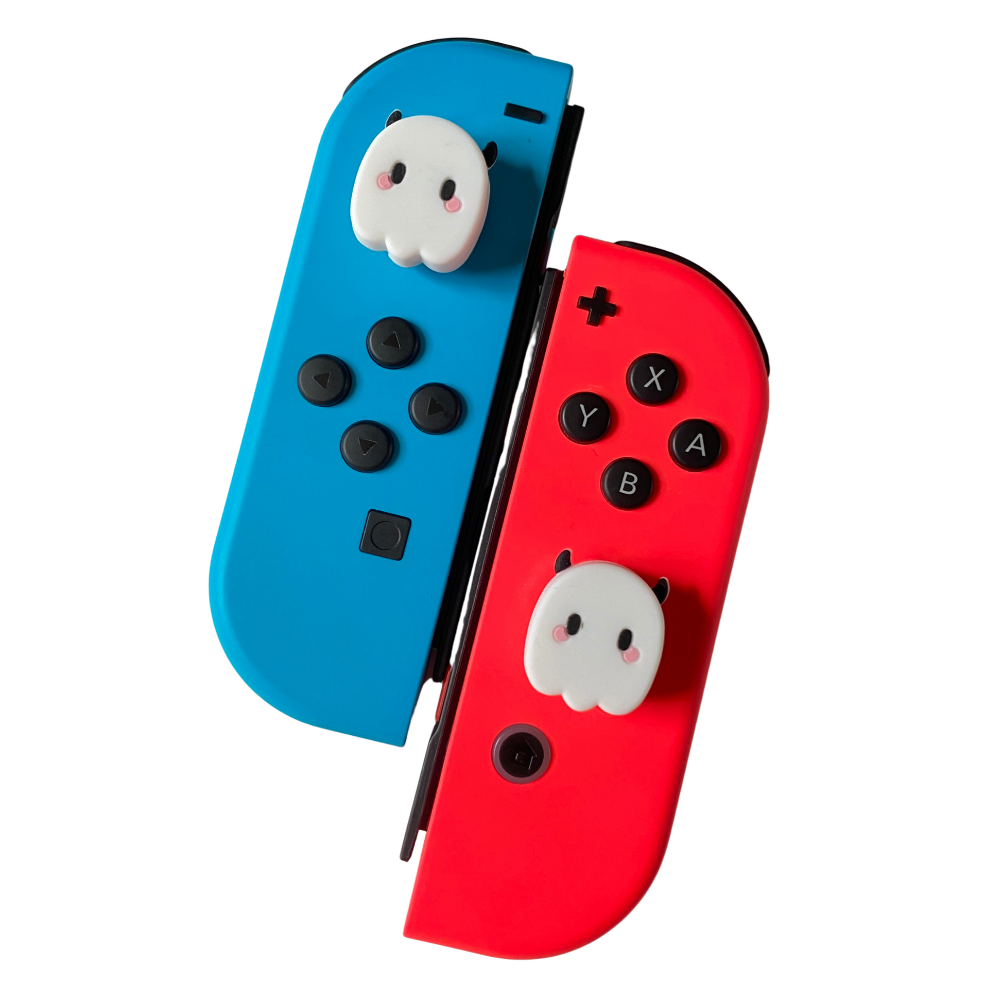 Compatible with Nintendo Switch Joy-Con controllers, these thumb grips are easy to install and offer a secure grip, preventing slips during intense gaming sessions. Take your gaming to the next level with 'Mr. Ghost Thumb Grips.'